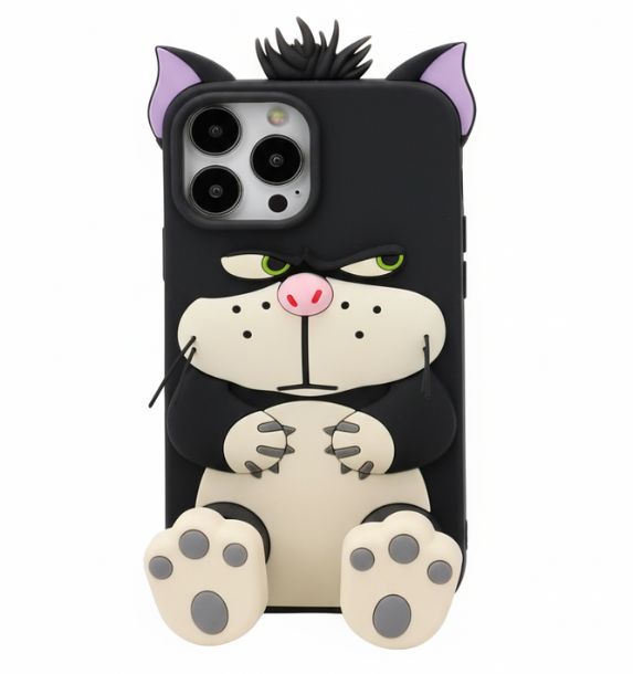 Add some feline flair! This 3D Lucifer Cat Silicone Case for iPhone 15 Pro is soft, protective, and irresistibly cute — complete with a built-in stand for easy viewing.